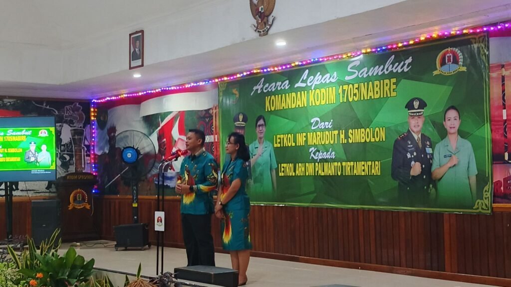 Spanduk latar belakang panggung yang bertuliskan “Acara Lepas Sambut Komandan Kodim 1705/Nabire” dengan foto kedua perwira menengah tersebut menjadi saksi bisu pergantian estafet kepemimpinan ini.